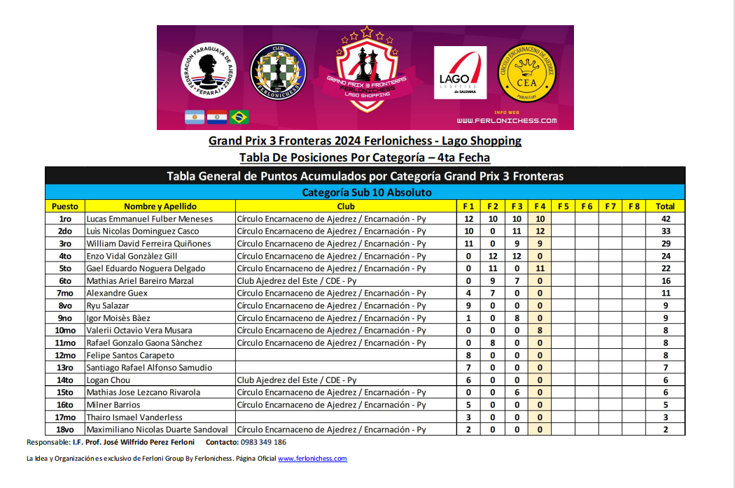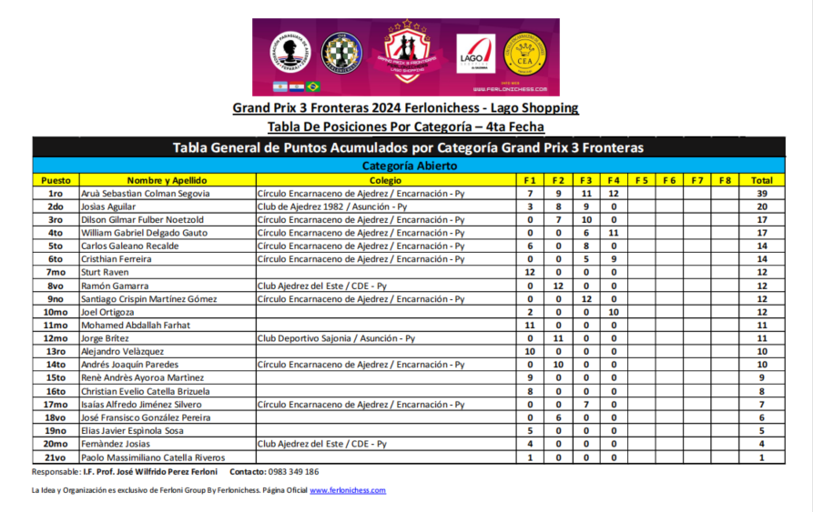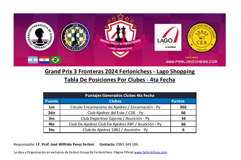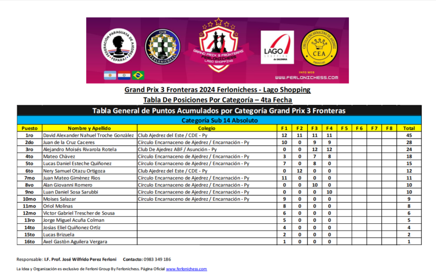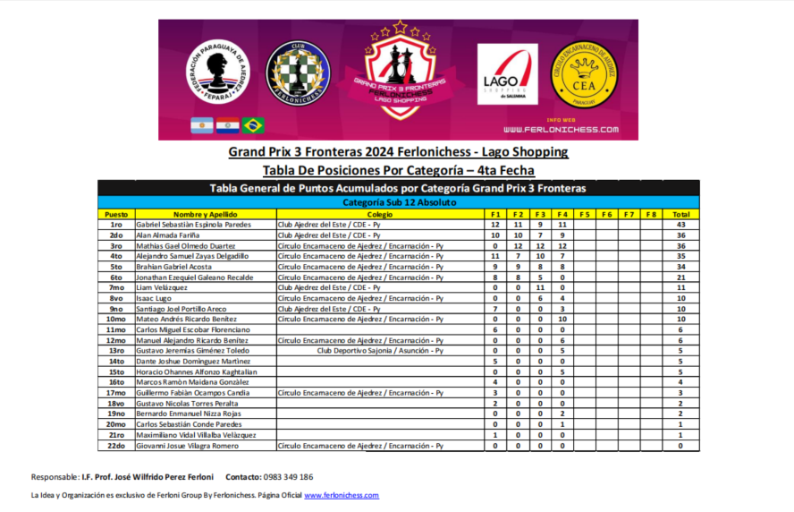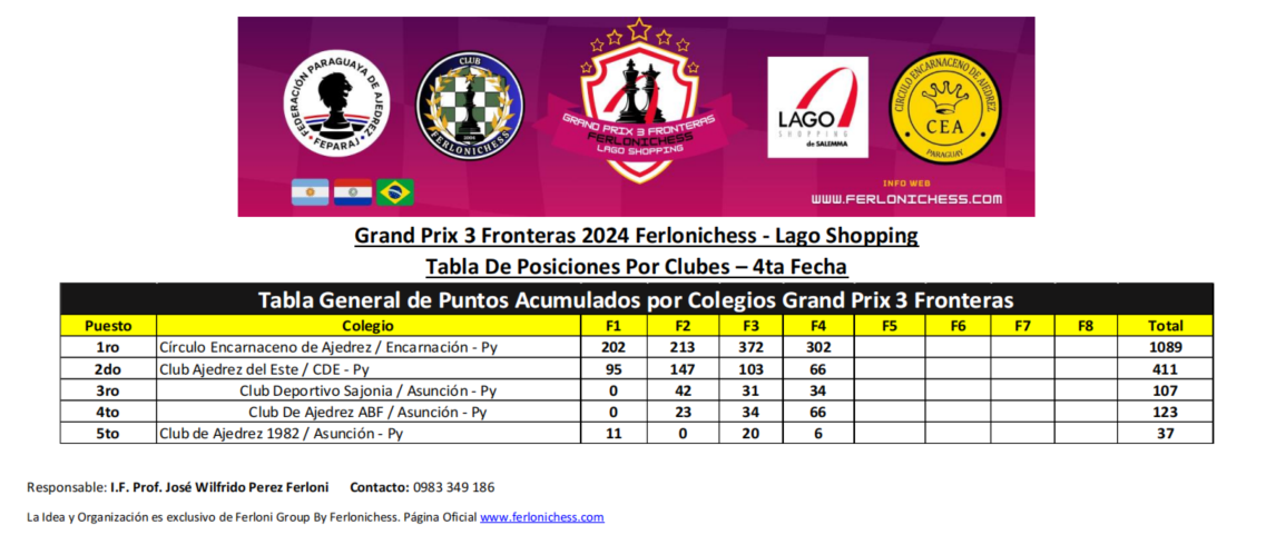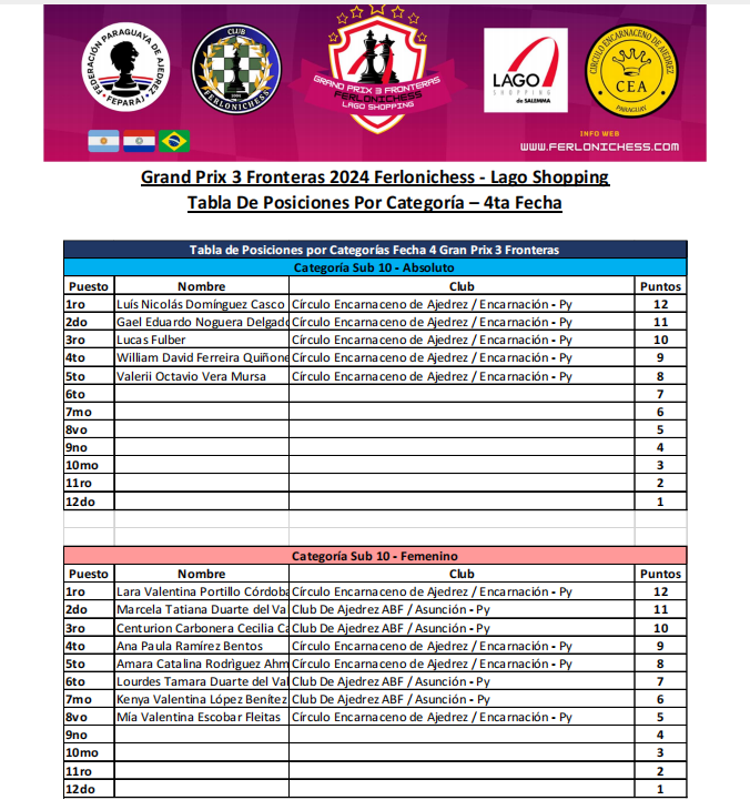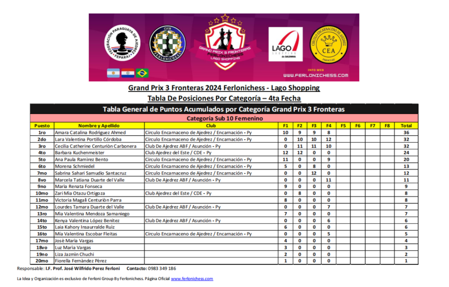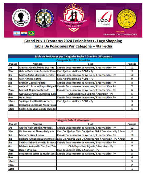 Tabla de Posiciones por Categorías y Clubes 4ta Fecha