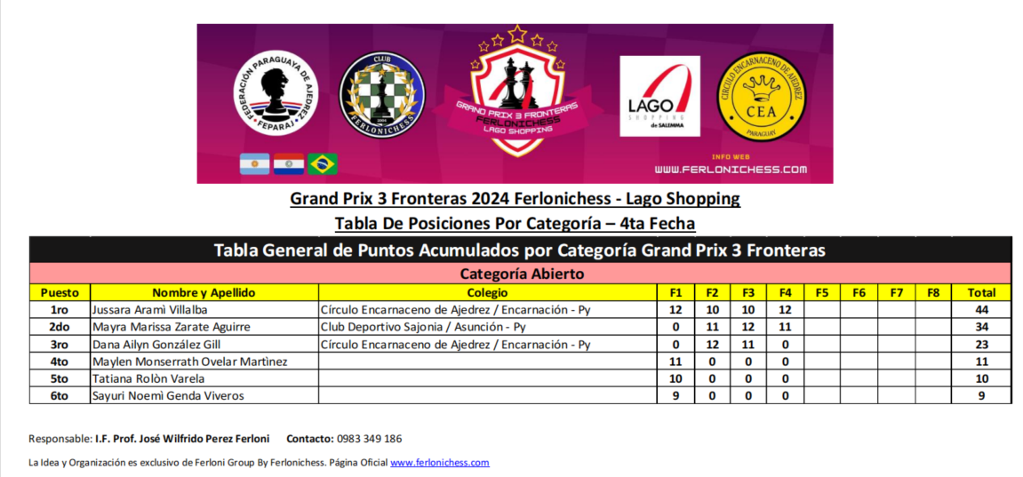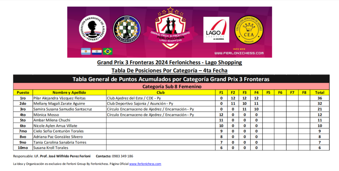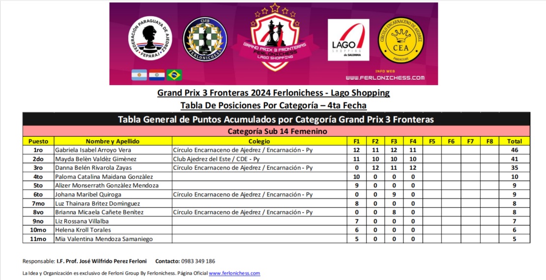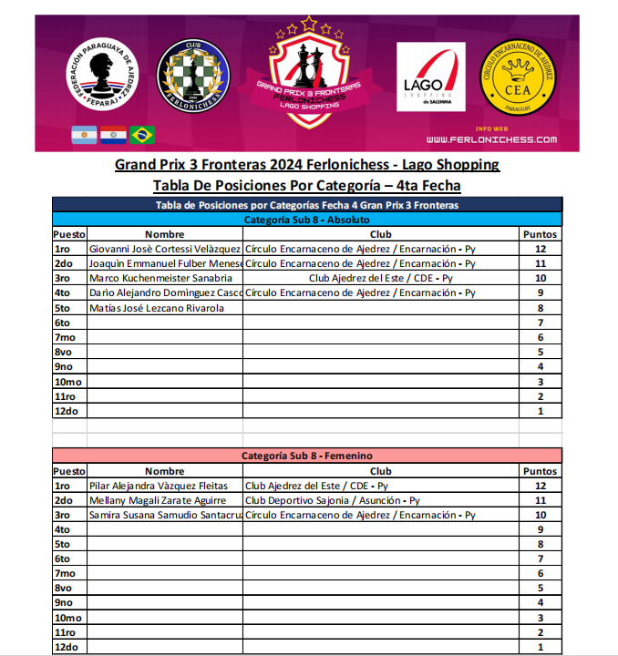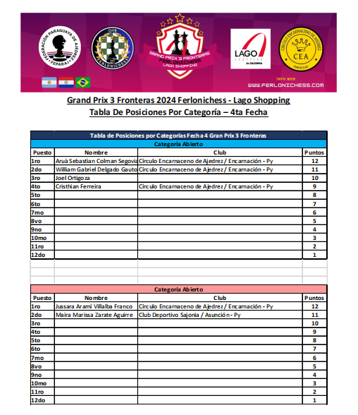 Tabla de Posiciones de Categorías ​4ta Fecha