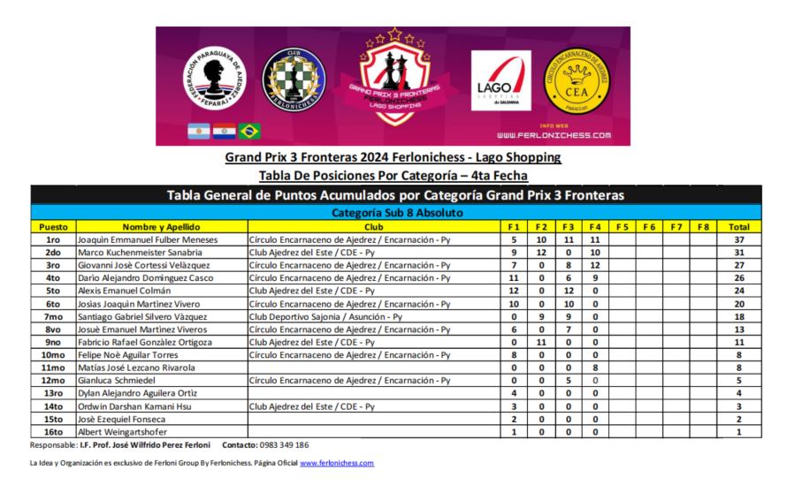 Acumulado General de Categorías 4ta Fecha