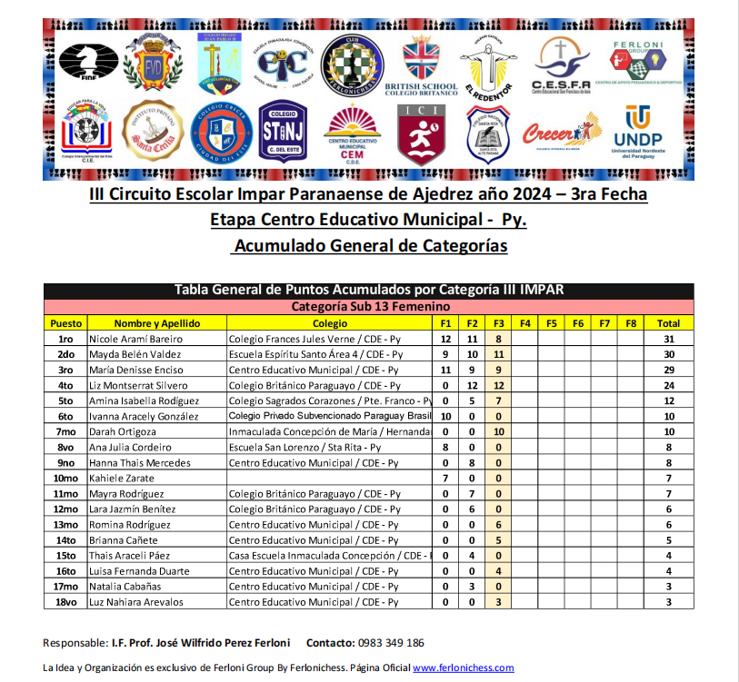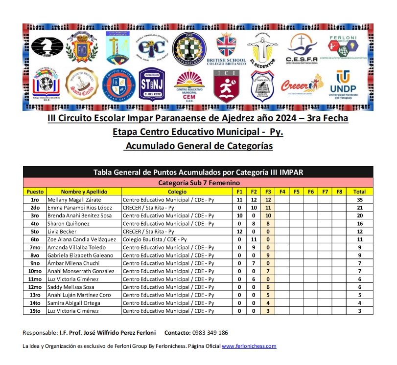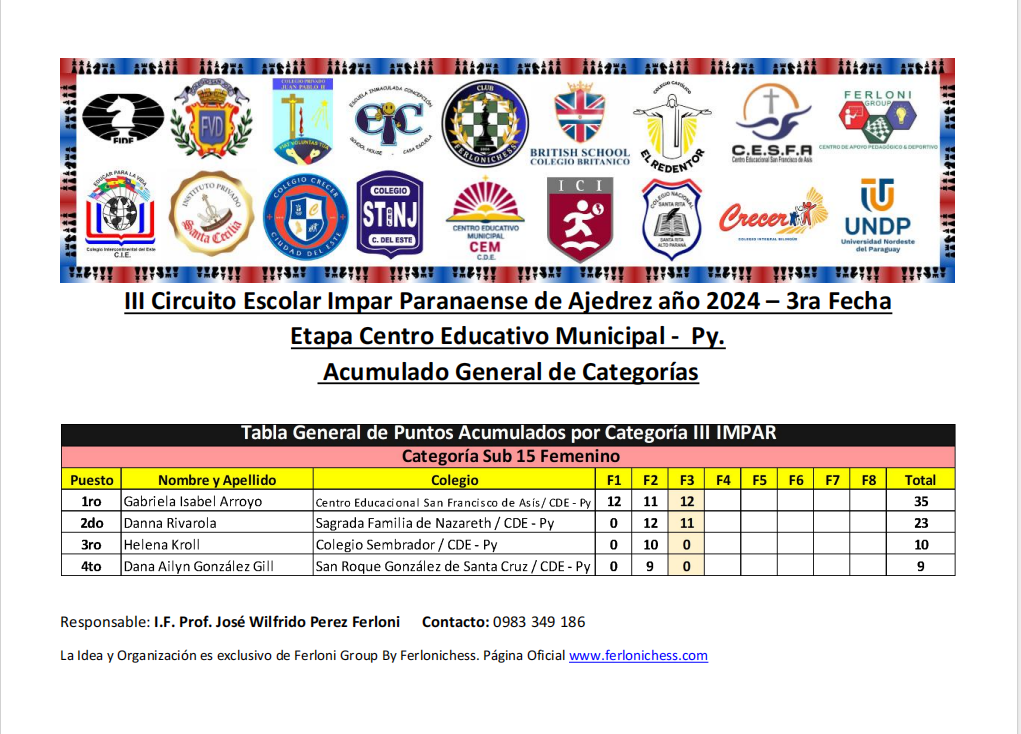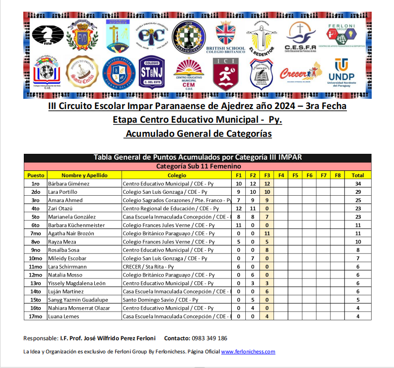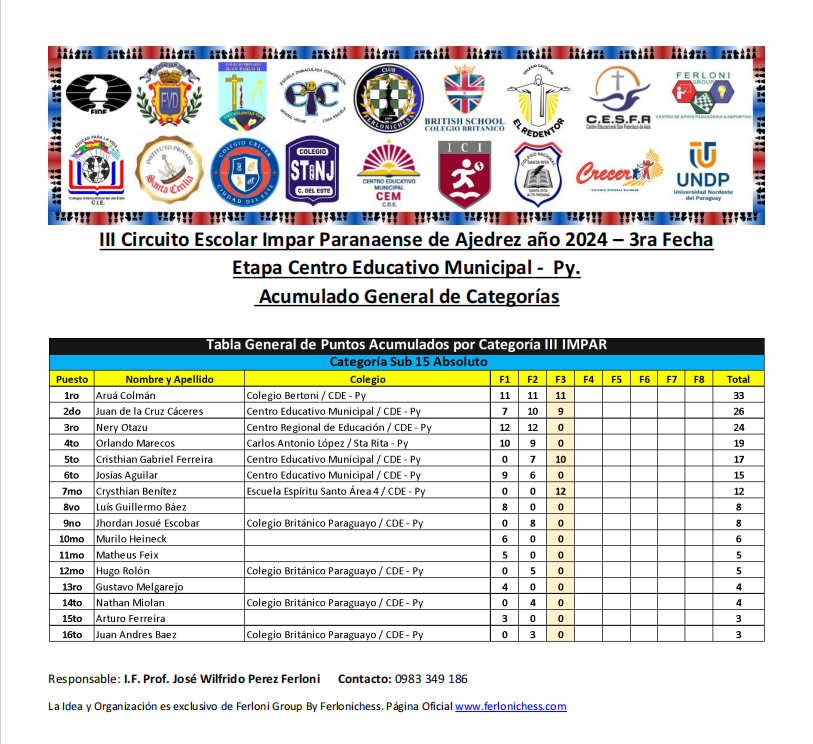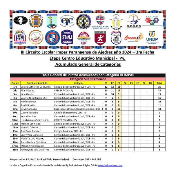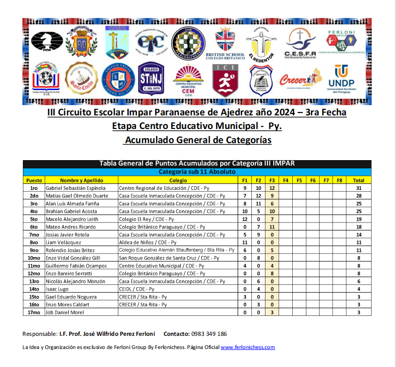 Acumulado General de Categorías y Colegios 3ra Fecha