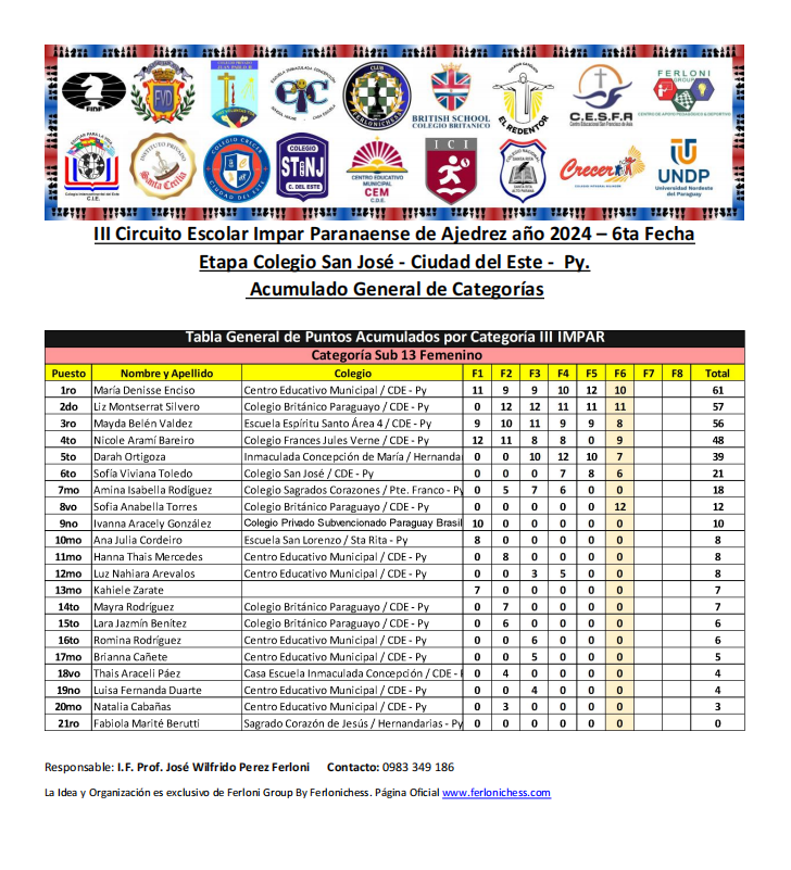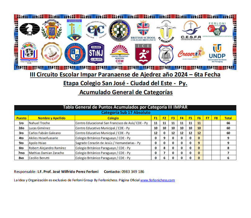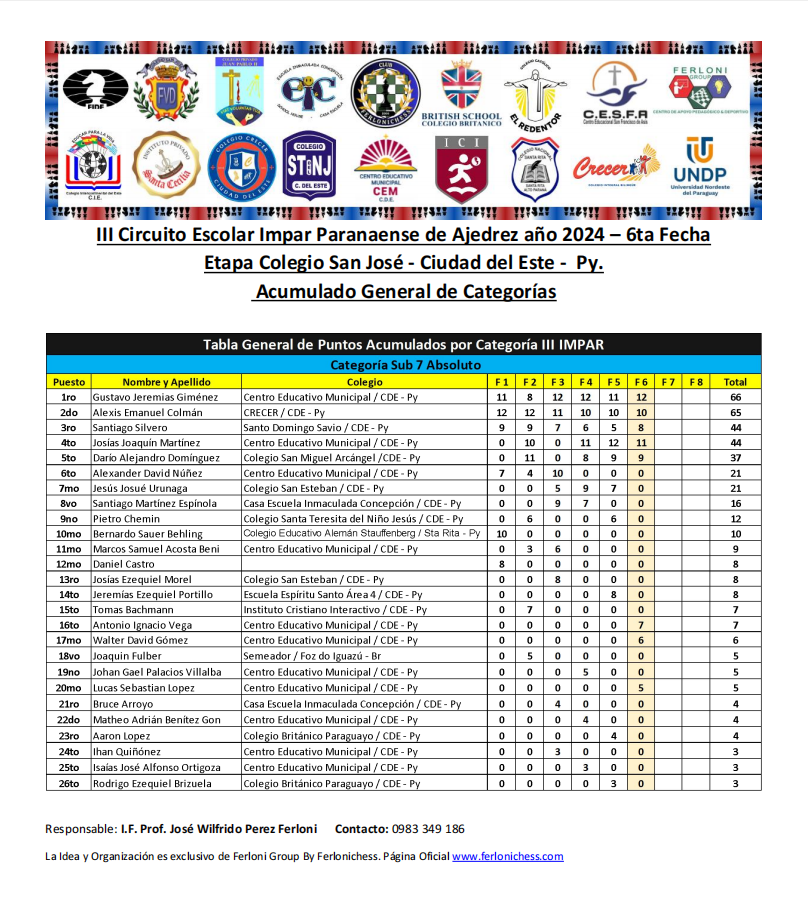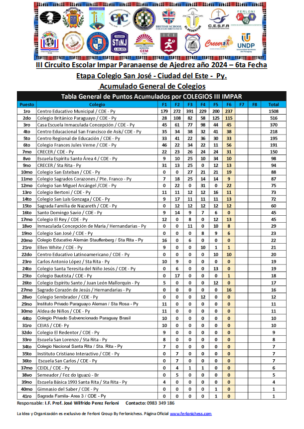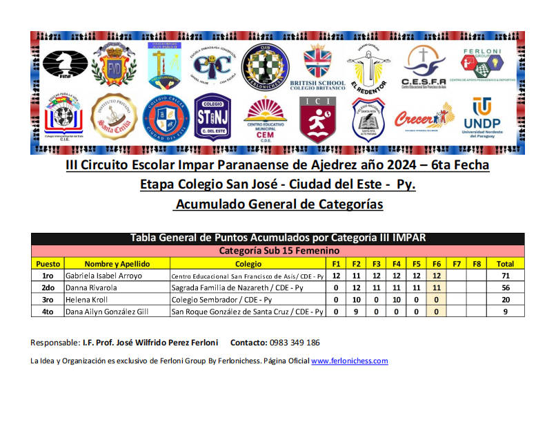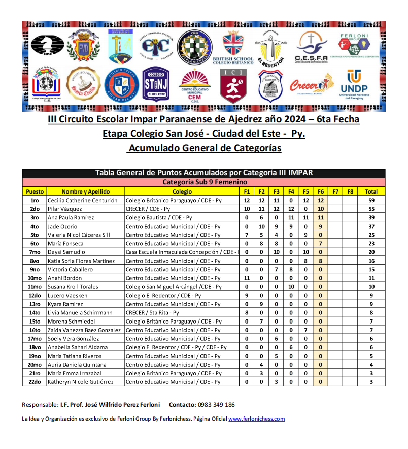 Acumulado General de Categorías y Colegios ​6ta Fecha