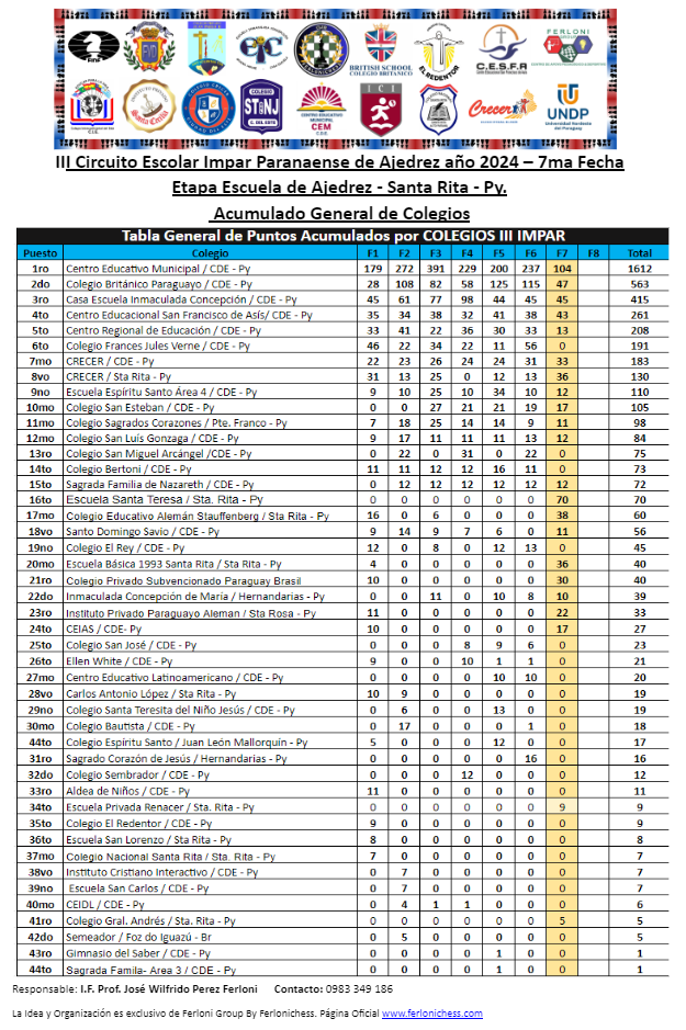 Acumulado General de Categorías y Colegios ​7ma Fecha